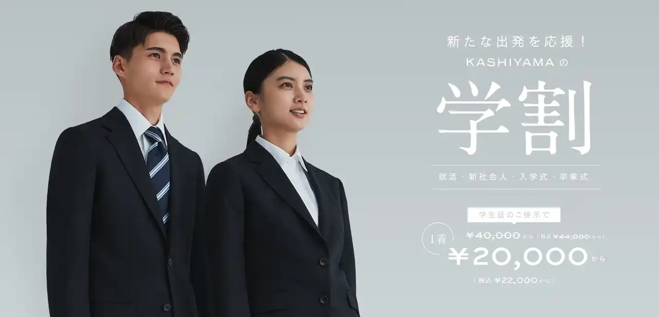 これからスーツを着る機会が増える方や、今まで既製品や、他社オーダーを着用されてきた方に『KASHIYAMA』だから提供できる価値を体験していただけるお得なキャンペーンです。 |