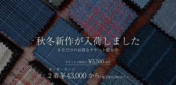 秋冬の新作生地、フォーマルスーツなど全ての生地にご利用いただけます。[木未1] |