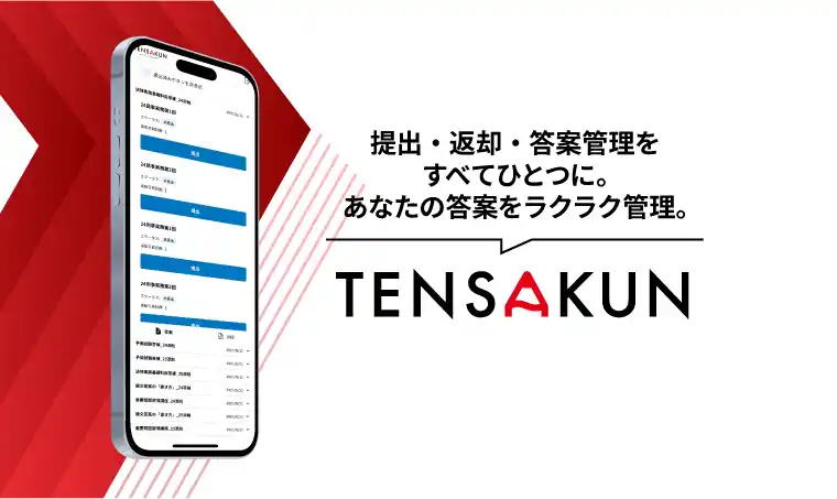 作成した答案が合格水準に達しているものか否かというのはなかなか自分自身では評価ができません。オンライン添削サービス「TENSAKUN」では試験合格者が一つひとつ答案を確認、コメント等でしっかりとフィードバックするため、自分の答案を客観視することができます。オンラインで提出、返却が完了するので郵送の手間なく添削を受けられます! |