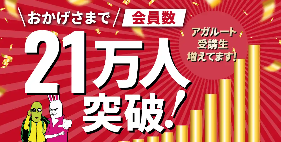 このたび、株式会社アガルート(本社:東京都新宿区、代表取締役:岩崎北斗)が運営するオンライン資格予備校「アガルートアカデミー」の累計会員登録者数が21万人を突破しました。 |