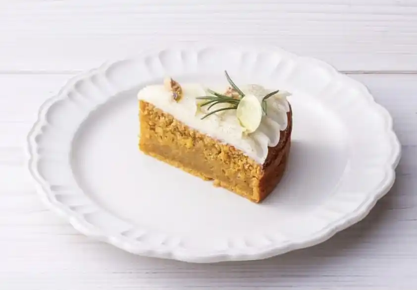スパイスがにんじんのやさしい甘さをより引き立てたキャロットケーキ。 |