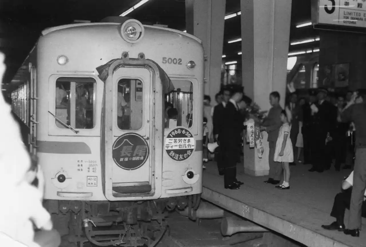 70年の歴史のなかで、乗り入れを担った車両はキハ5000形、特急ロマンスカー・SE(3000形)、RSE(20000形)、MSE(60000形)、JR東海371系の全5車型です。このうち、SEとRSEについては、当館1階「ロマンスカーギャラリー」に常設展示しています。 |
