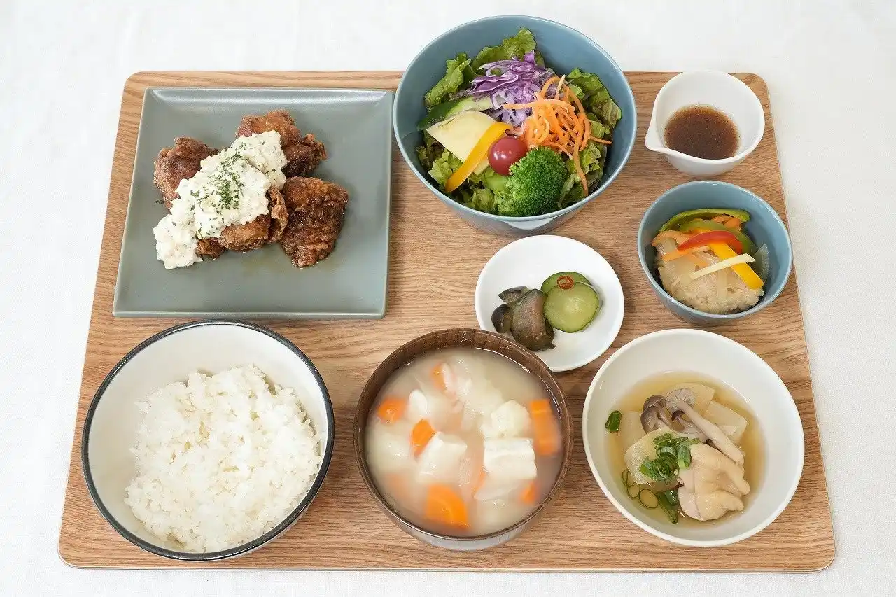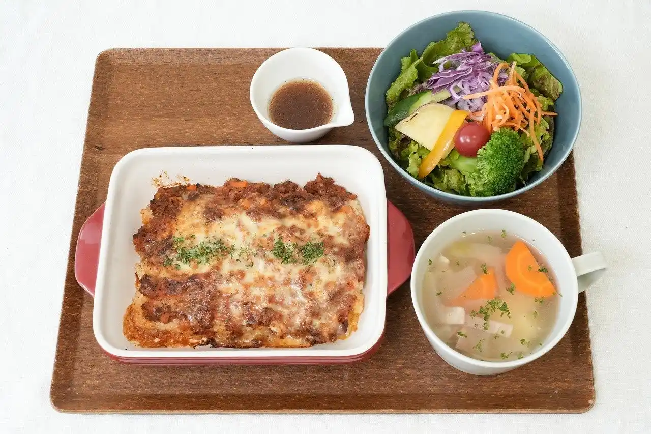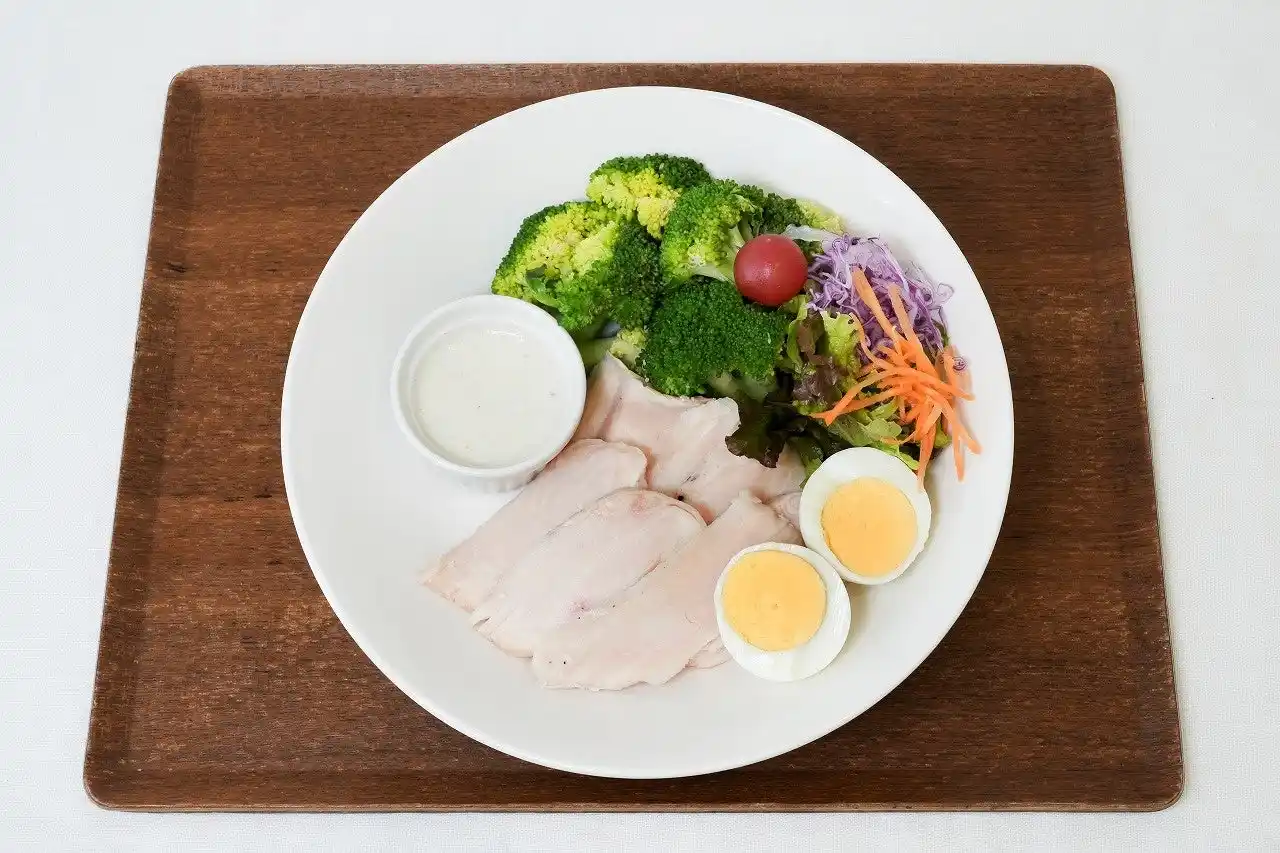 他にも、ミートドリアや鶏とキノコのクリームパスタ、小麦粉不使用のスパイスベジタブルカレーなど、洋食メニューも充実。ジム帰りのお客様におすすめの、鶏のむね肉、ブロッコリー、ゆで卵などを組み合わせたプロテインプレートや、抹茶味のプロテインにバナナ、ほうれん草、ブルーベリー等を加えたプロテインin抹茶ドリンクもご用意しています。 |