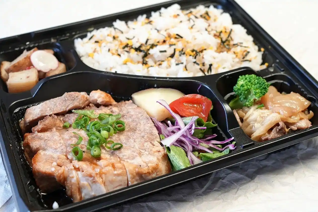 マテラ豚のトンテキ、マテラ豚のとんかつは、愛媛の弁当でも人気のメニュー。マテラ豚とは、愛媛で採れたシリカ配合ミネラルパウダーを飼料に配合して育てられた豚です。余分な脂分がなく、あっさりしているのに、しっかりとした旨味を感じられます。 |