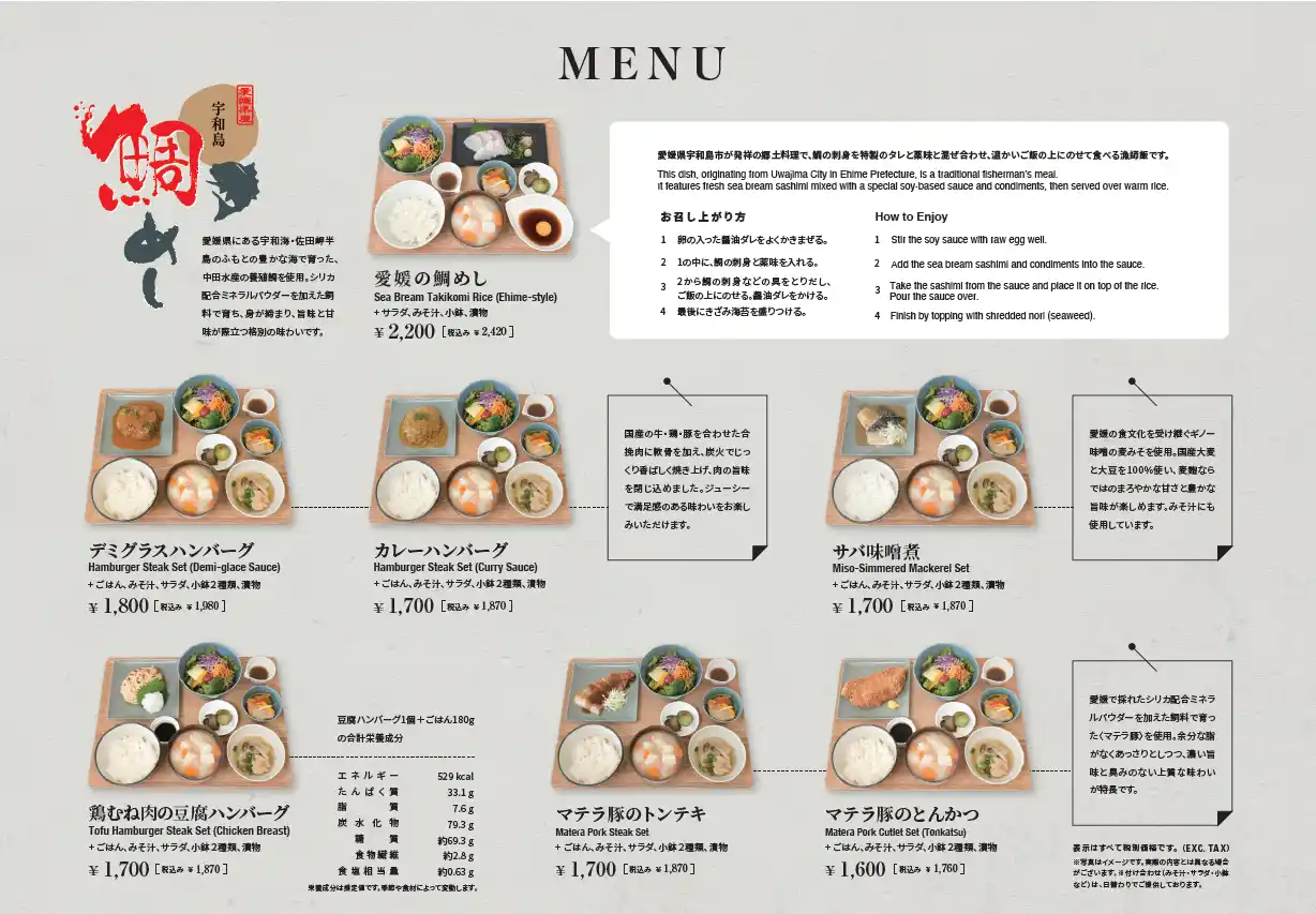 愛媛の鯛めし(+サラダ、みそ汁、小鉢、漬物)2,200円(税別) ※イートイン限定メニュー |