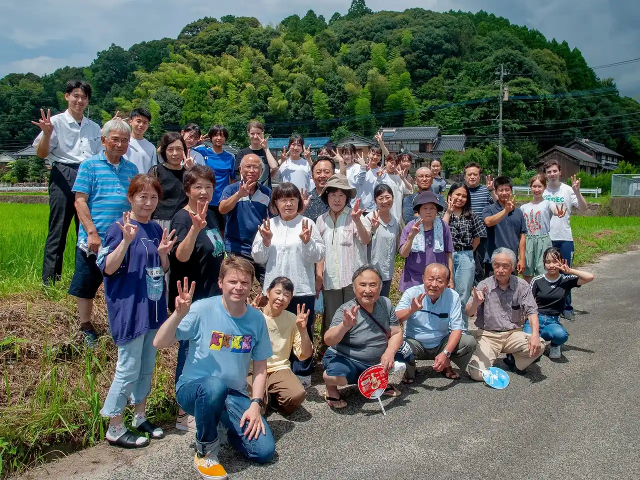 横枕の住民と、ボランティアツーリズムで訪れたフランスの参加者 |