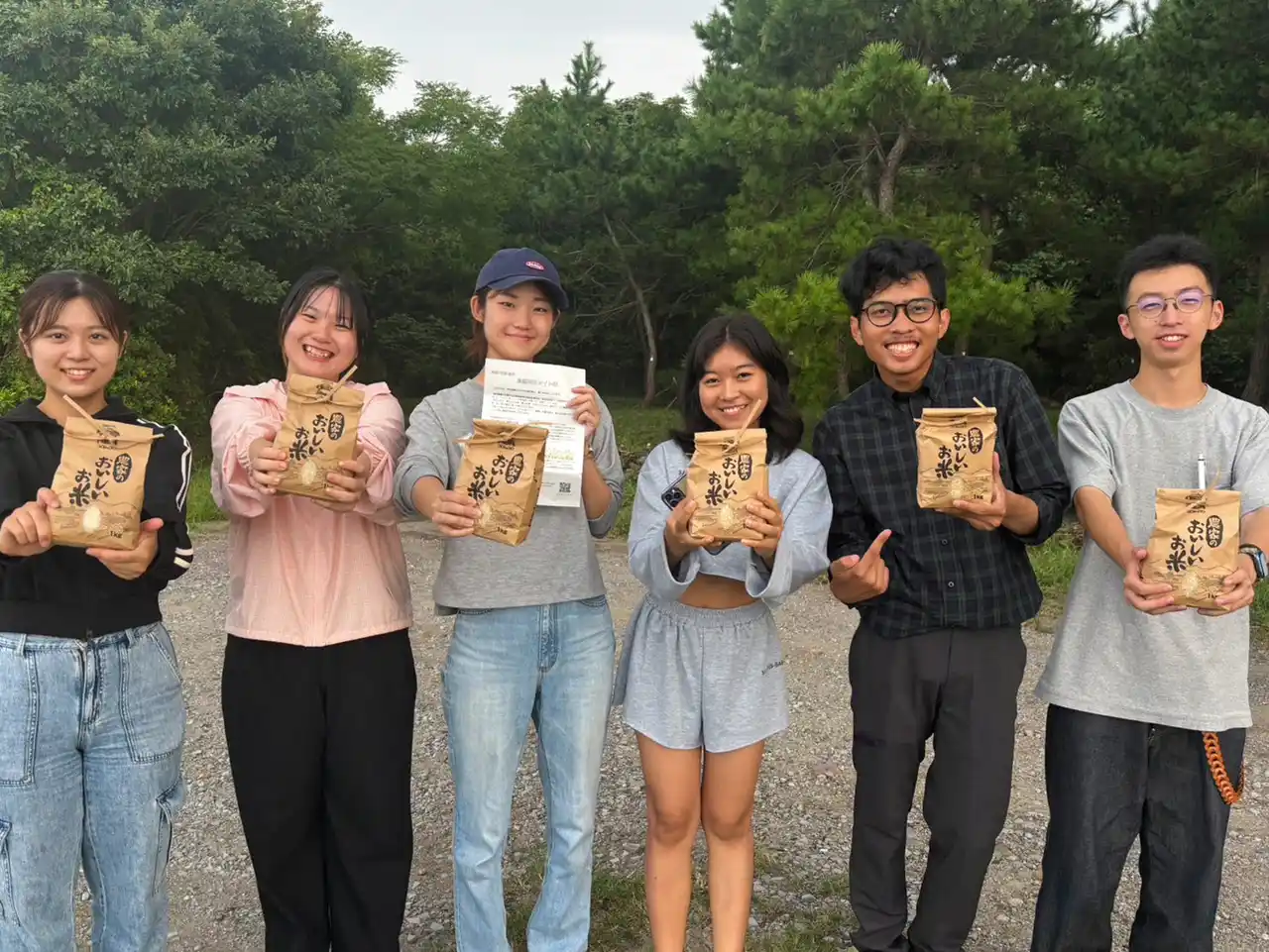 自然共生サイトを訪れたAPU(立命館アジア太平洋大学)の学生へ新米を贈呈 |