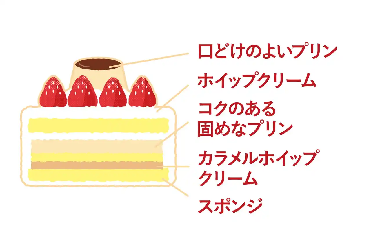 スケーキ。中にもプリンをサンドし、コクのあるカラメルホイップクリームを合わせまし |