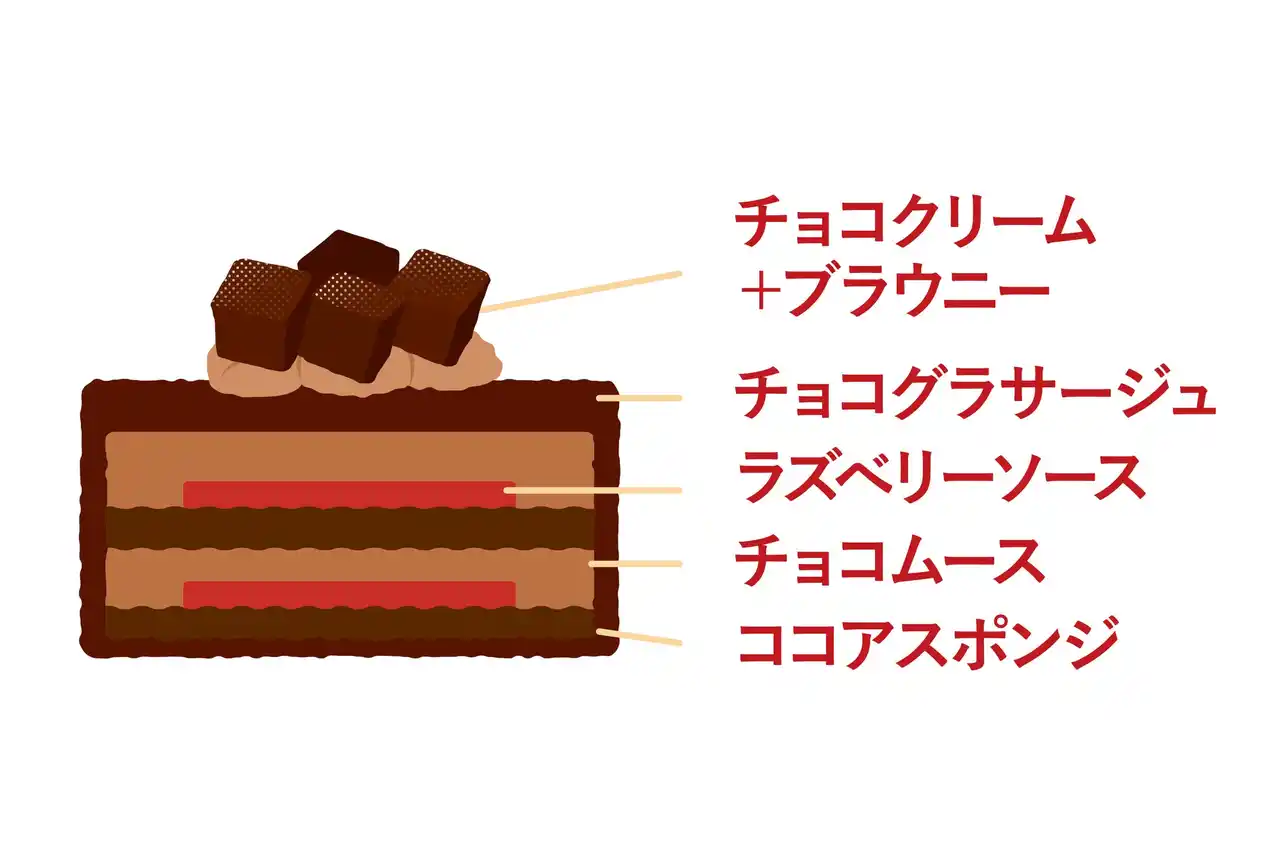 ね、艶やかなチョコのグラサージュで仕上げました。トッピングにしっとり食感のブラウニ |