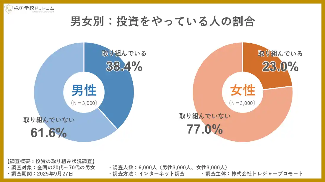 投資に取り組む男性は女性の約1.7倍 |
