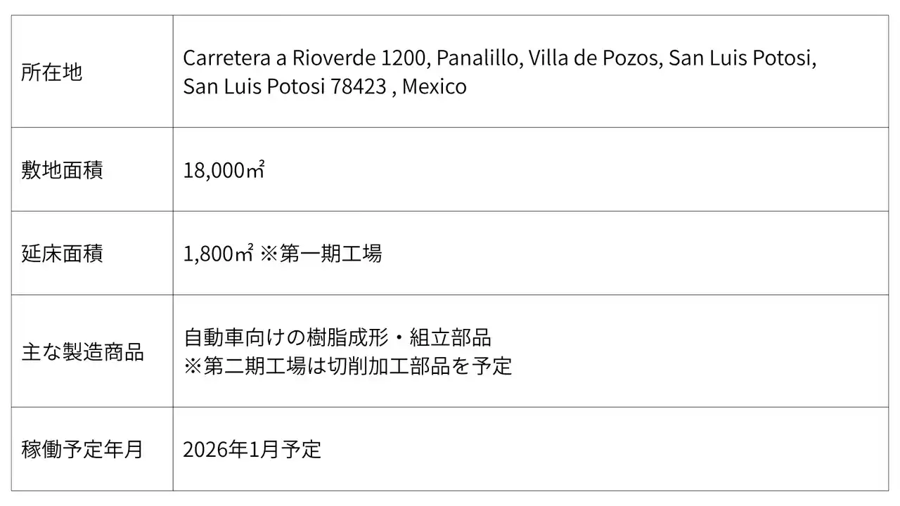 このたび新たに設立したメキシコ・サンルイスポトシ工場は、地域経済の発展と製造業の需要拡大に対応し、北米市場への安定供給とサプライチェーン強化を担う重要な拠点です。 |