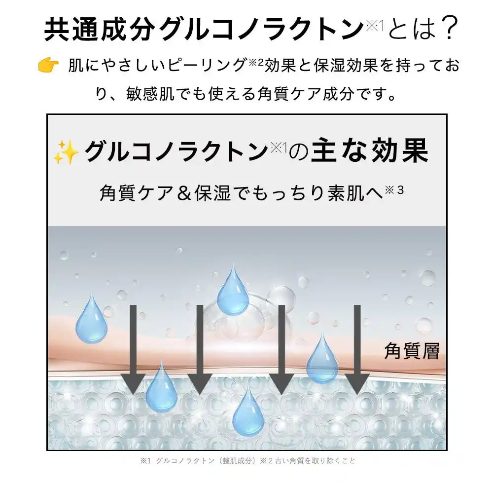 | 角質を柔らかくつるスベにする『グルコノラクトン *1』配合 | |||||||||||