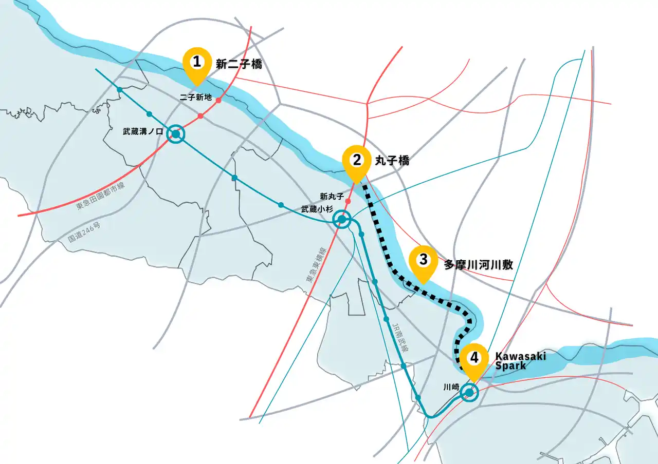 場所:丸子橋河川敷(中原区上丸子八幡町)~Kawasaki Spark(川崎区駅前本町25番地) |