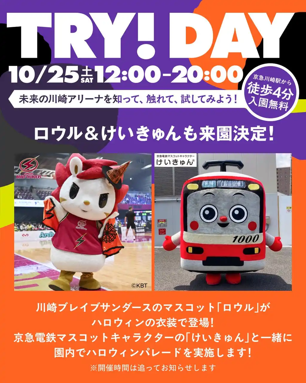 ※会場2、4で「3 多摩川でつなごうハロウィンウォーク」に参加すると、川崎ブレイブサンダースマスコット ロウルなどのオリジナルのフェイスシールが貰えます。(数量限定) |