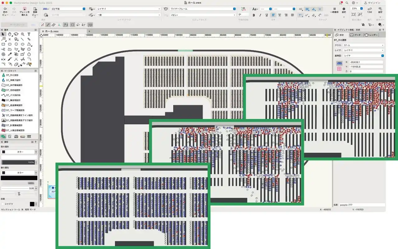 Vectorworks + SimTreadを活用することで単なるデザインツールにとどまらず、安全性・創造性・競争力を兼ね備えた設計環境を手に入れることができます。 |