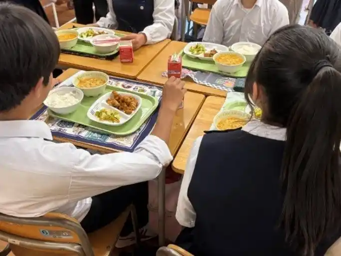 川崎市立中学校の給食として提供している 元祖ニュータンタンメン本舗監修「ニュータンタンメン風春雨スープ」 |