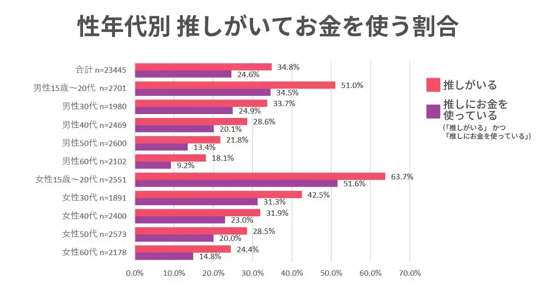 世代や性別によって、推し活の割合やお金の使い方は大きく異なることが判明 |