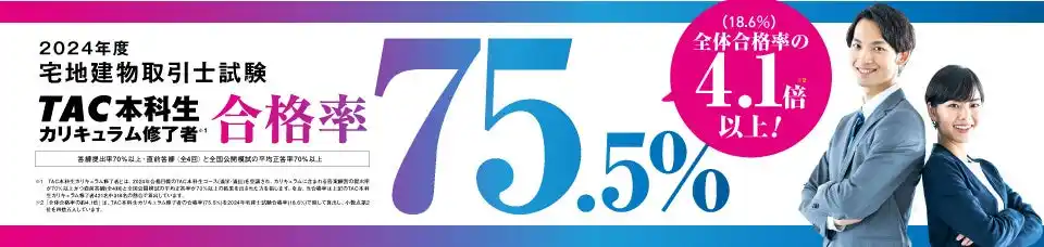 ▼「TACの合格実績」詳細はこちら https://www.tac-school.co.jp/kouza_takken/takken_jisseki.html |