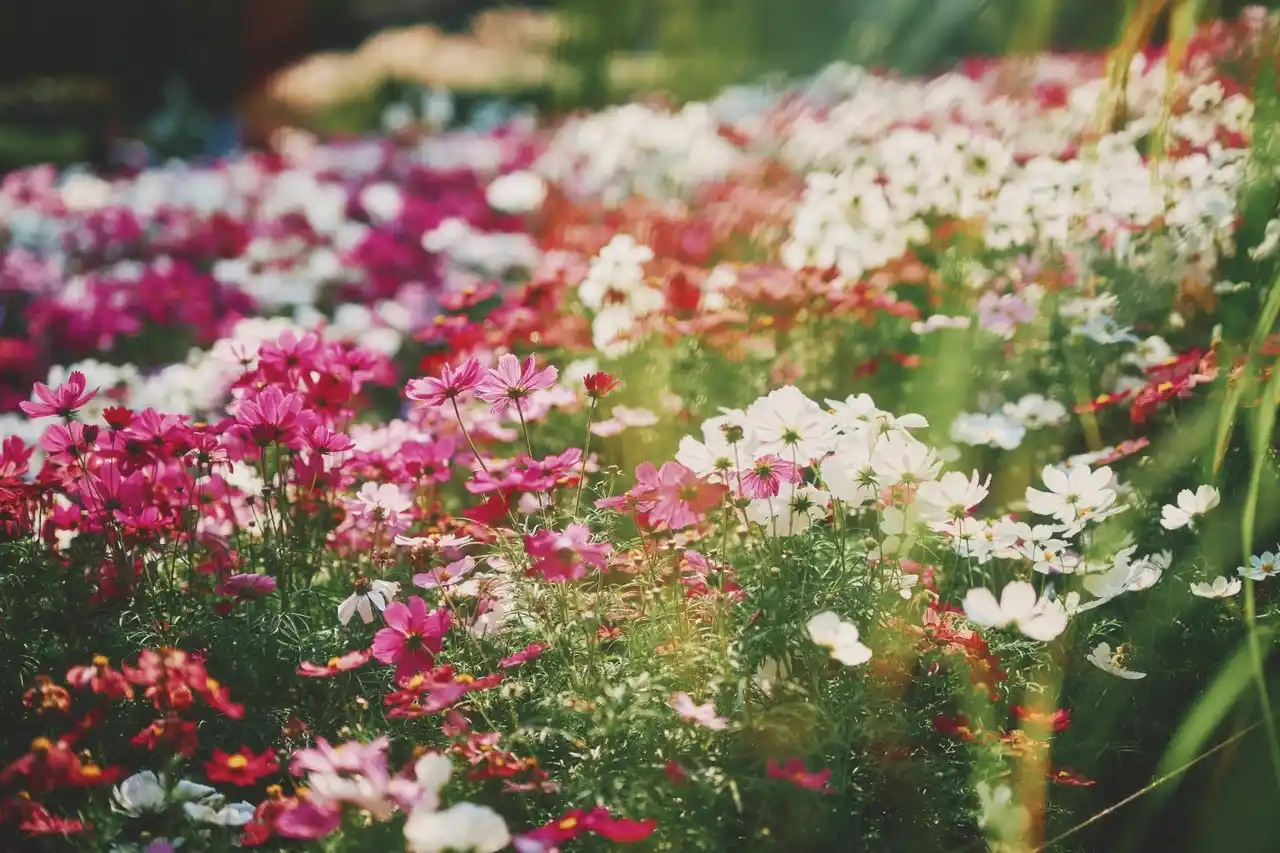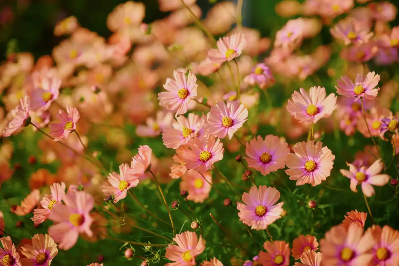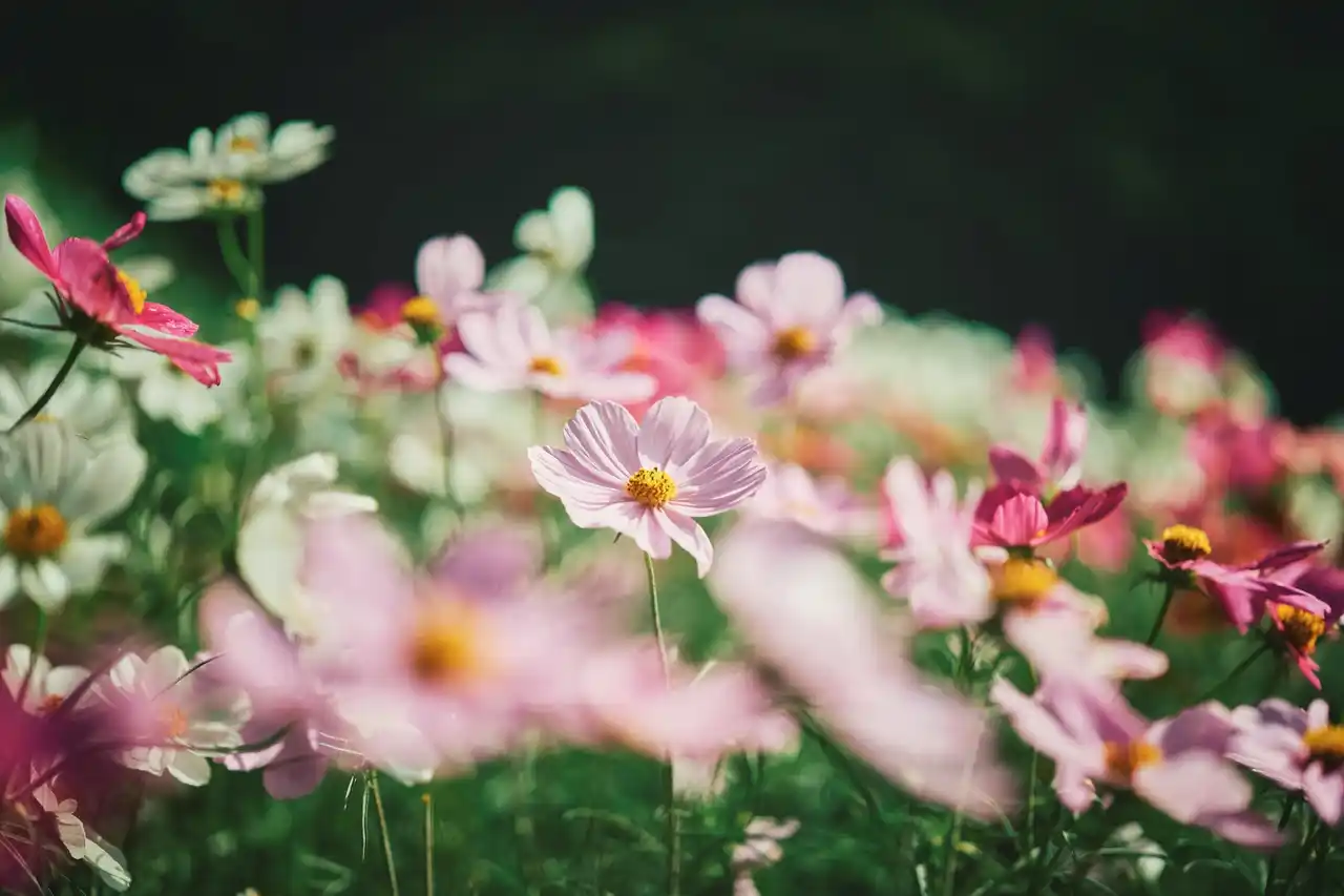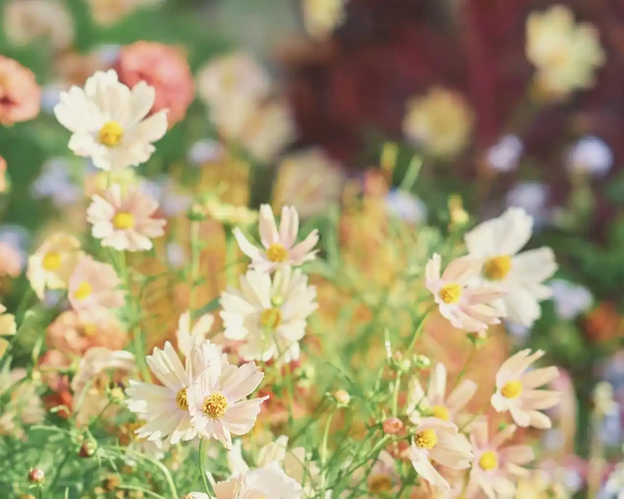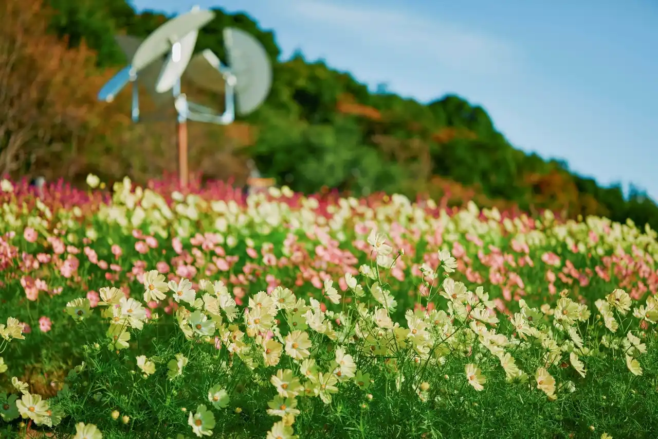 <神戸布引ハーブ園のコスモス> 「風の丘フラワー園」、「四季の庭 -よろこびの庭」の2つの趣が異なるガーデンで、違った品種・色合いのコスモスをお楽しみいただけます |