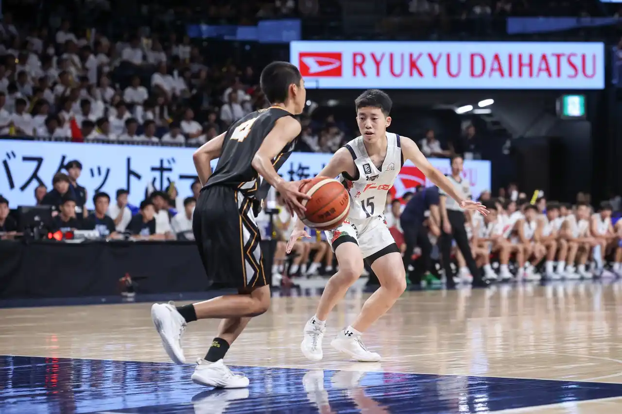 #18 宮城昊河選手がスピードを生かしたドライブからレイアップシュートを沈めます。その後#12 大城瑛士選手、#37 金城大智選手、#18 宮城選手がインサイドから得点を重ねます。素早いパスワークからフリーの#31 新里颯一朗選手が3Pシュートを射抜きます。#21 砂川恵汰選手がジャンプシュートを沈め、17-8で徐々にリードを広げます。#30 仲松優選手が3Pシュートを沈めます。#10 仲村元喜選手がオフェンスリバウンドを奪い、そのまま流し込み、26-10で1クォーターを終了します。 |