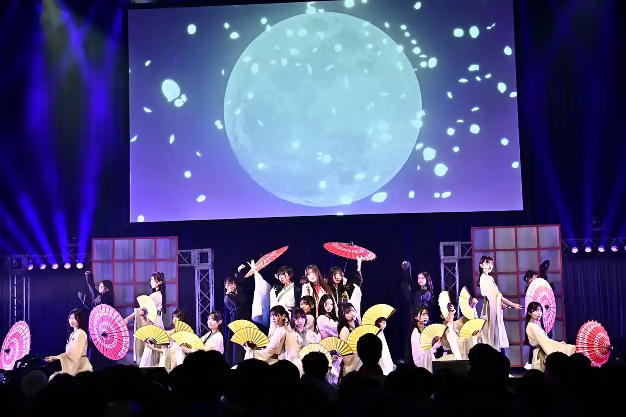 伝統と青春が響き合うこの演目で、彼女たちは“静寂の中の情熱”を体現し、僕青としての新たな表現領域を切り開いた。パフォーマンス直後のMCでは、かぐや姫を演じた早崎すずきが「めっちゃ緊張しました。途中で羽織が変わるリスキーなところもあって、ドキドキだったんですけど、みんなで頑張ったからこそ成功させたいなと思っていたので無事終わってホッとしております。」と笑顔で振り返り、会場を和ませた。 | |||
