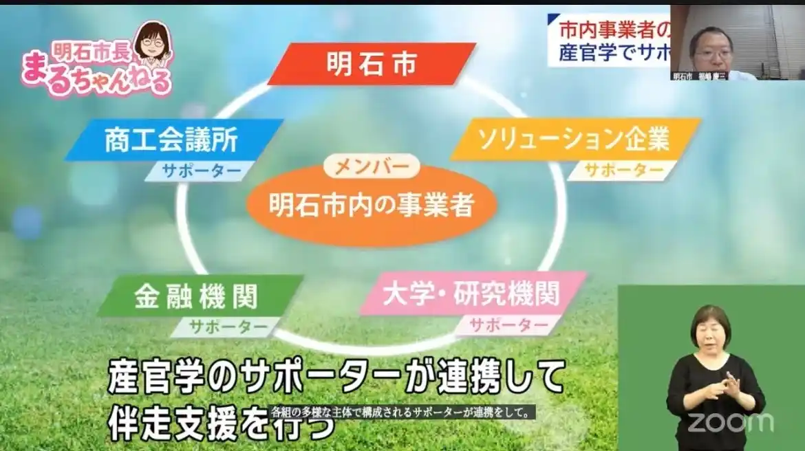 明石市は市全体のCO2排出量の半分以上を占めているのが産業部門です。そのため、とくに大企業のサプライチェーンを支える中小企業の脱炭素化を後押しするため、「明石脱炭素経営パワーアップ制度(ADKP)」を立ち上げました。 |