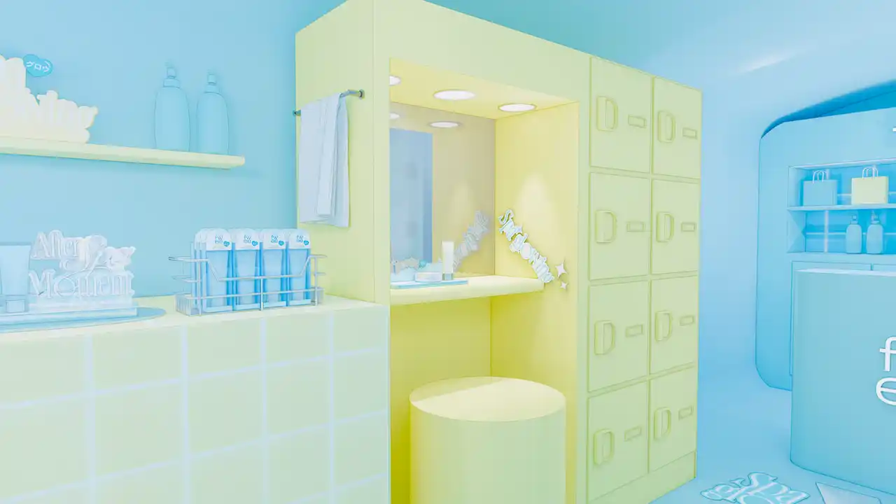ブランドカラーであるイエローを基調に装飾された“エアストリーム”では、10月に登場した新作「5番トーンアップベース」を中心に、ブランドの人気アイテムを実際に手に取って試せるタッチアップ体験をご用意しています。