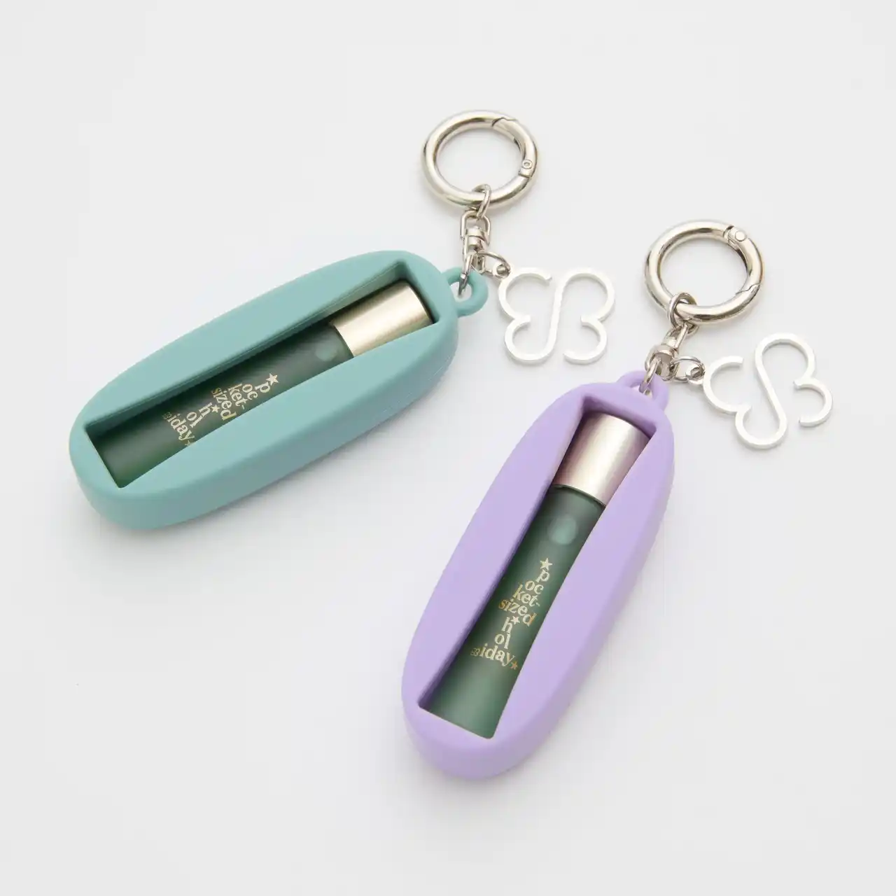 ukaのロゴチャームがついたネイルオイルホルダーはバッグやスマホにつけて、出先でも簡単に指先の保湿に。カラーはお選びいただけます。 |