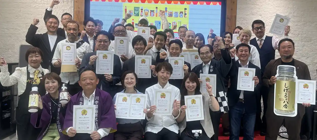 日本各地の調味料からNO.1を決める「調味料選手権」の発表会が10月19日、大阪・阪神梅田本店「食祭テラス」で開かれ、エントリー264品の中から『第16回調味料選手権2025』総合第1位が決定。NO.1の栄冠は、京都府の「京のお野菜じゃむ さつまいも」に輝きました。2位は広島県の「燻製だし醤油70ml」、3位は群馬県の「水を少しも使っていない新しょうがドレッシング」が選ばれました。 |
