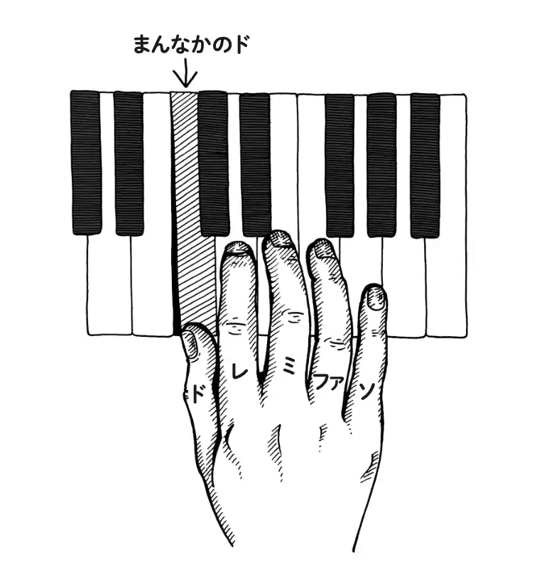 その名前の通り、これはまさにキーボードのまんなかにあって、あなたが初めてピアノの前に座った時、自分の位置を確認するのに最適な場所にあります。 |