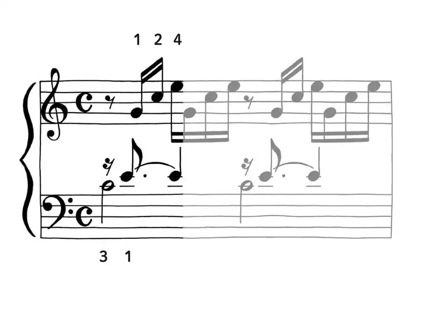 楽譜に書き込まれた指遣いに沿って弾いてみましょう。 |