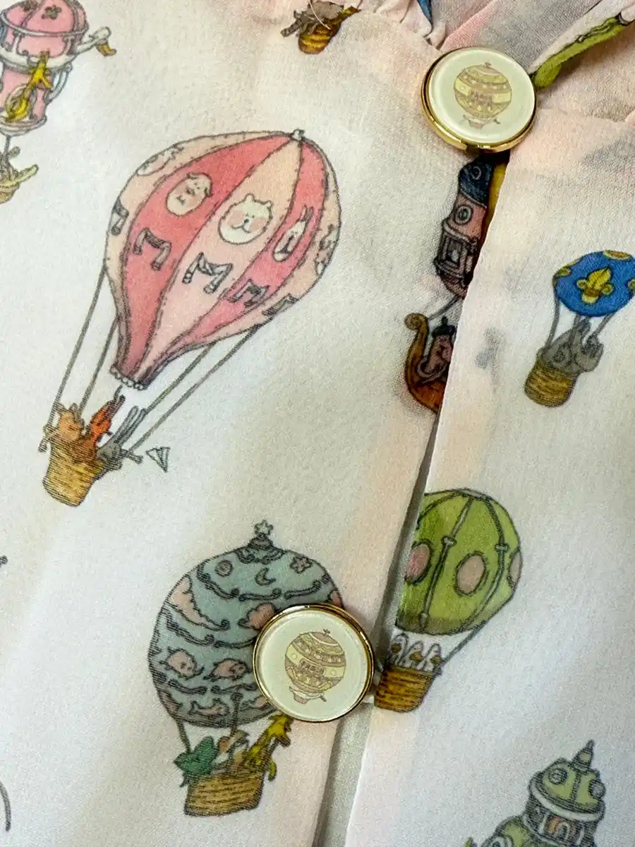 やわらかな生地でボリューム感のあるワンピースは、女の子ならだれでも憧れるシルエット。 おくるみでも人気の気球柄が目を引く、ほかにはないワンピース。 |