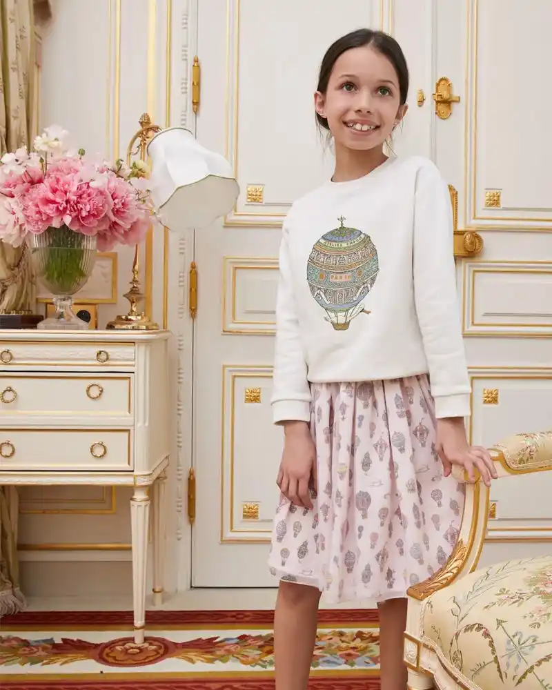 気球柄ワンピースとおそろいのバレリーナスカートも展開。 姉妹でのリンクコーデも楽しめます。 |