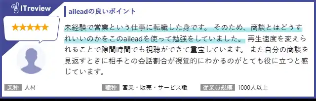 ※その他、ailead (エーアイリード) のレビューページはこちらからご覧いただけます |
