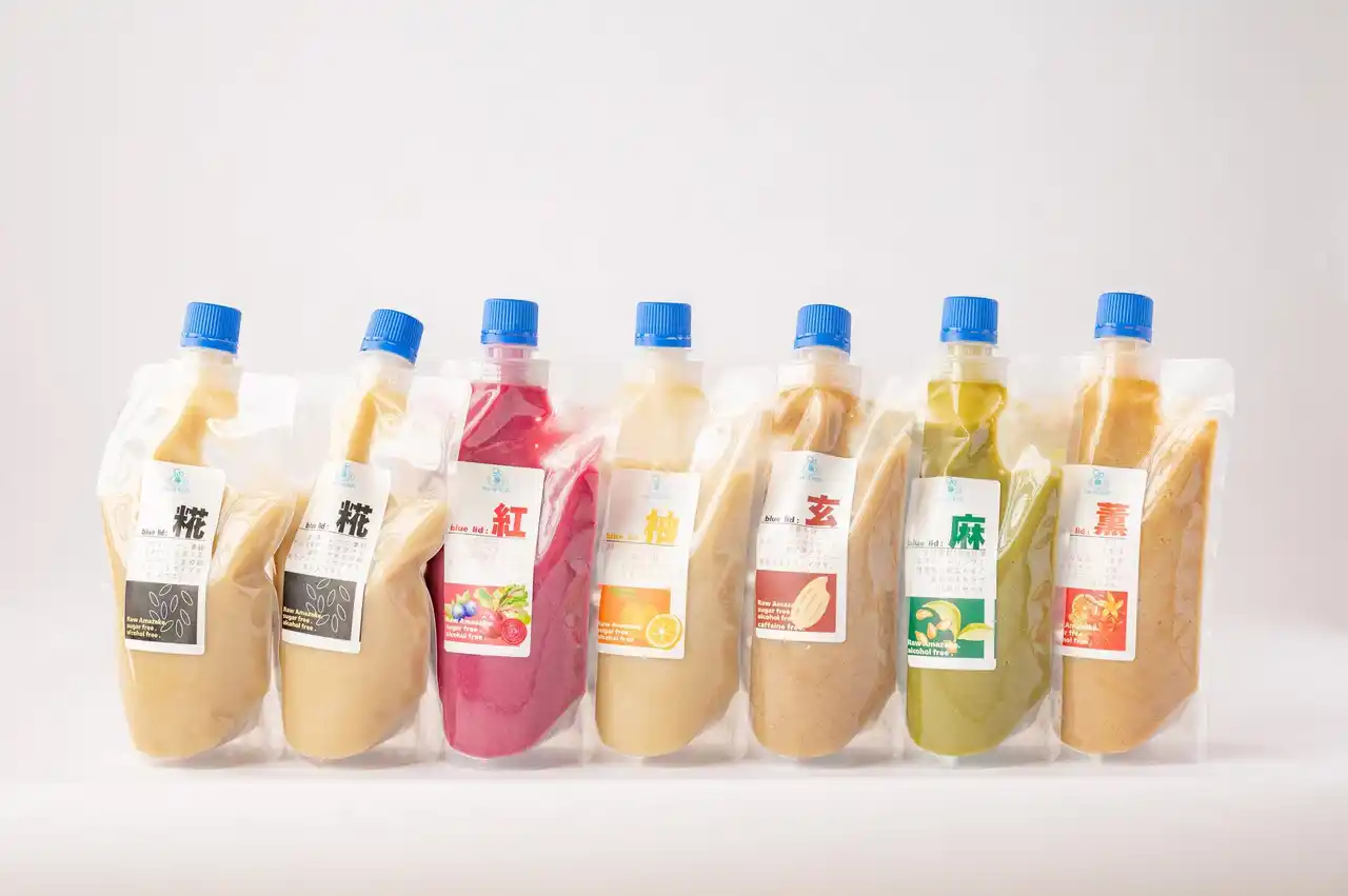 | 「子供からお年寄りまで安心して飲める、エナジードリンクを」という想いのもと、伝統的な米糀の発酵力を活かしながら、植物性の自然素材×米糀という新感覚の糀甘酒ドリンク専門店として誕生しました。『bluelid:KOJI』(ブルーリッドコウジ)が目指すのは、カフェインや人工甘味料に頼らない「自然素材のエネルギー補給」糀に含まれる良質なブドウ糖・ビタミンB群・アミノ酸が身体に優しく活力を与えます。 | |||||||||||||||||