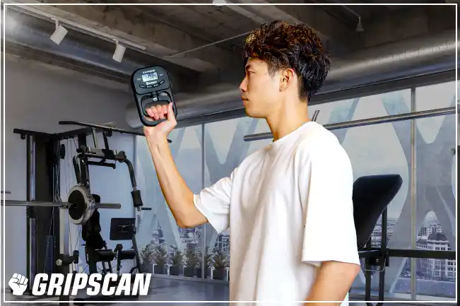 平均値比較(STRONG/NORMAL/WEAK)で小さな伸びも逃さず可視化します。シリコンラバーグリップとグリップ幅調整