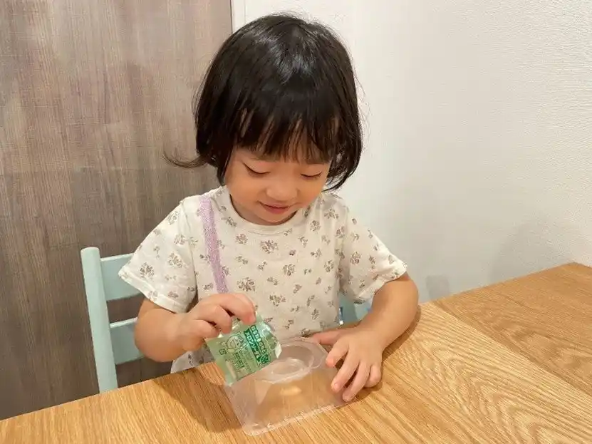 簡単に楽しく作ることができるので、まるで普段のおやつの時間のようで子どももウキウキに。粉薬を入れて食べてみると「おいしい~」と大喜びでした。1箱に2種類の味が入っているのも嬉しいポイント。「次は何味にしようかな?」とお薬の時間を楽しみにしていました。(りうさんのお母さま) |
