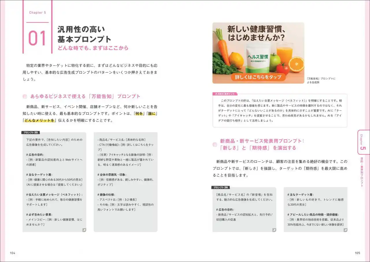本書は、デザインスキルを基盤にAIやマーケティングの知見を融合させ、「AI×デザイン」の可能性を追求する著者が、生成AIで人を動かすクリエイティブをつくるための思考法から具体的なプロンプト設計、調整の技術までを体系的に解説します。 |
