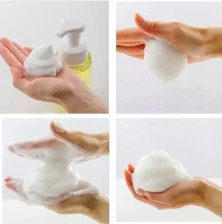 弾力のあるもっちり泡がクッションとなって、摩擦を抑えて皮脂や汚れを包み込みます。気持ち良い泡をたっぷり手にとって、泡の弾力を楽しんでください。 |