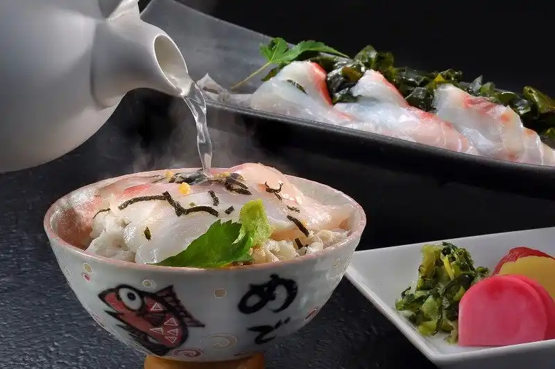 | 地元で水揚げされた真鯛をふんだんに使った人気の「鯛めし朝食」。地場産食材をふんだんに使用したお料理に加え、鯛の骨をしっかりと焼き、丁寧に取った出汁の旨みを堪能できるこだわりの「鯛茶漬け」をご用意いたします。まずは、鯛めしで1杯。次に鯛の刺身と一緒に2杯。最後に鯛出汁をご飯にかけて3杯と3度おいしい朝食を提供いたします。 | ||||||||
