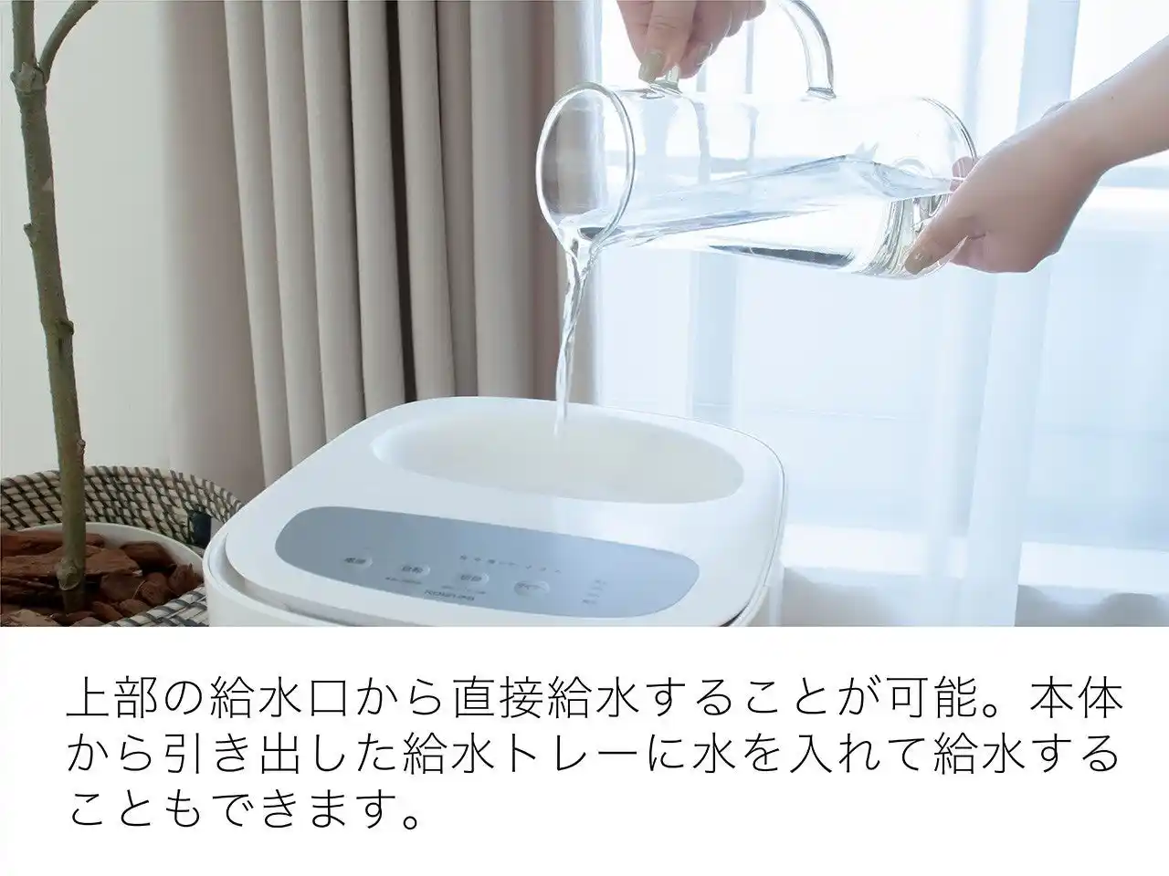 ・給水しやすい簡単上部給水。本体から引き出した給水トレーに水を直接入れて給水も可能。 |