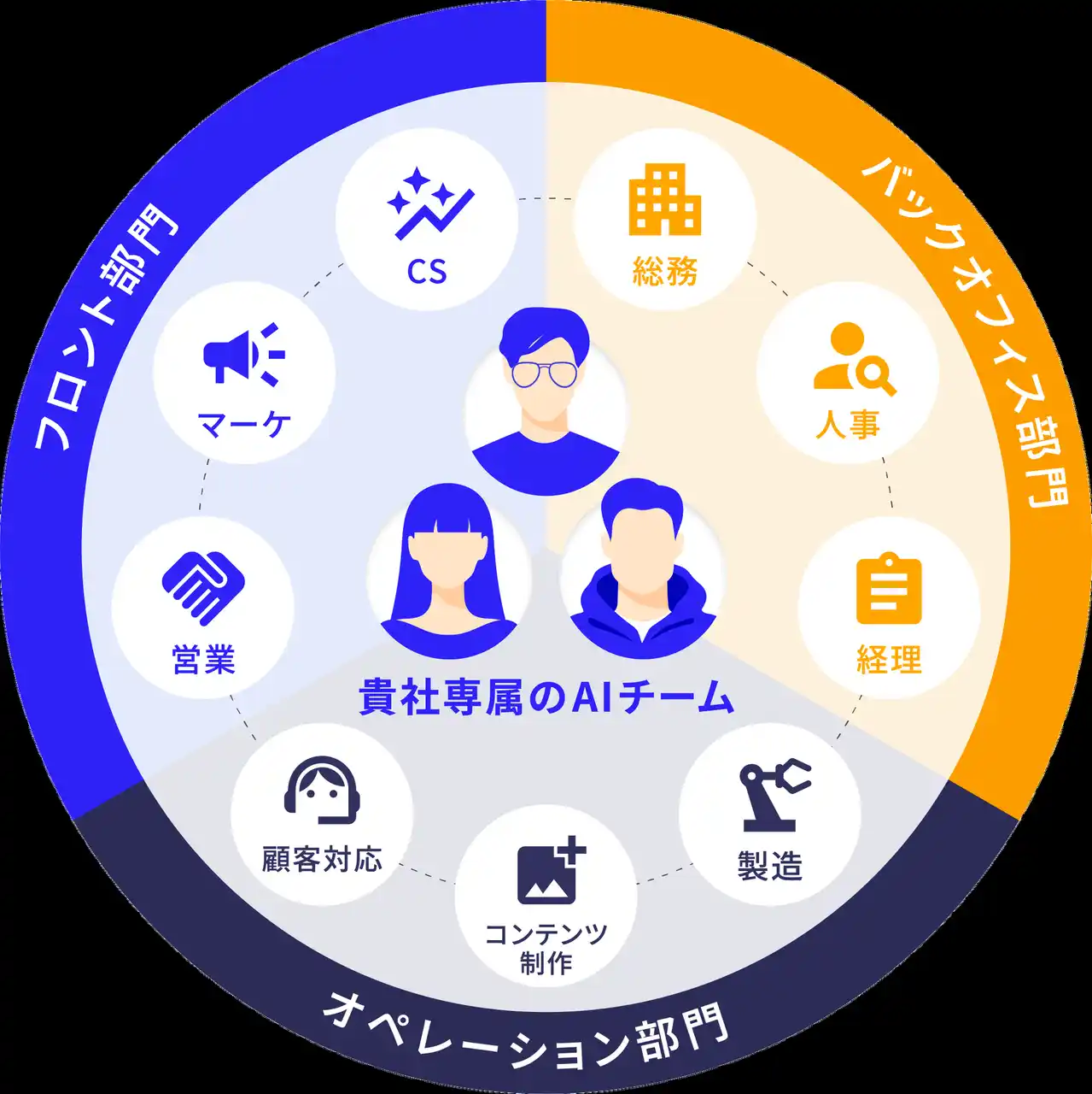 専属のAIチーム体制を構築し、導入設計を行います。 |