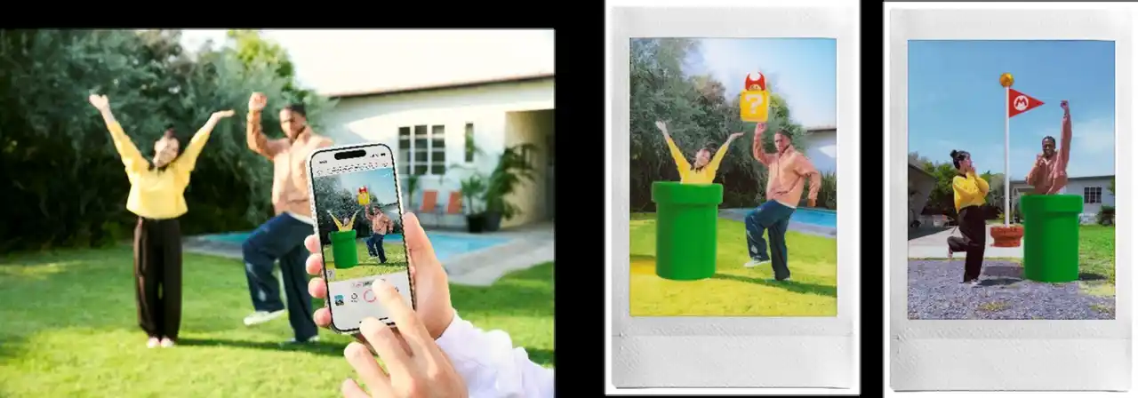 (3)<新機能>「スーパーマリオ」の立体的なエフェクトで空間を彩り、撮影・プリントを楽しめる機能「instax AiR Studio(TM)」 |