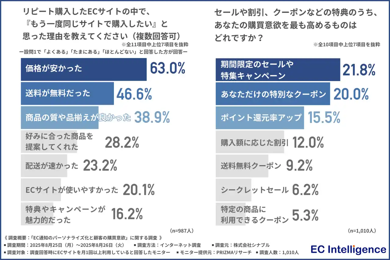 「価格の安さ」や「送料無料」といった経済的なメリットが、再購入の大きな動機となっていることがわかります。 |