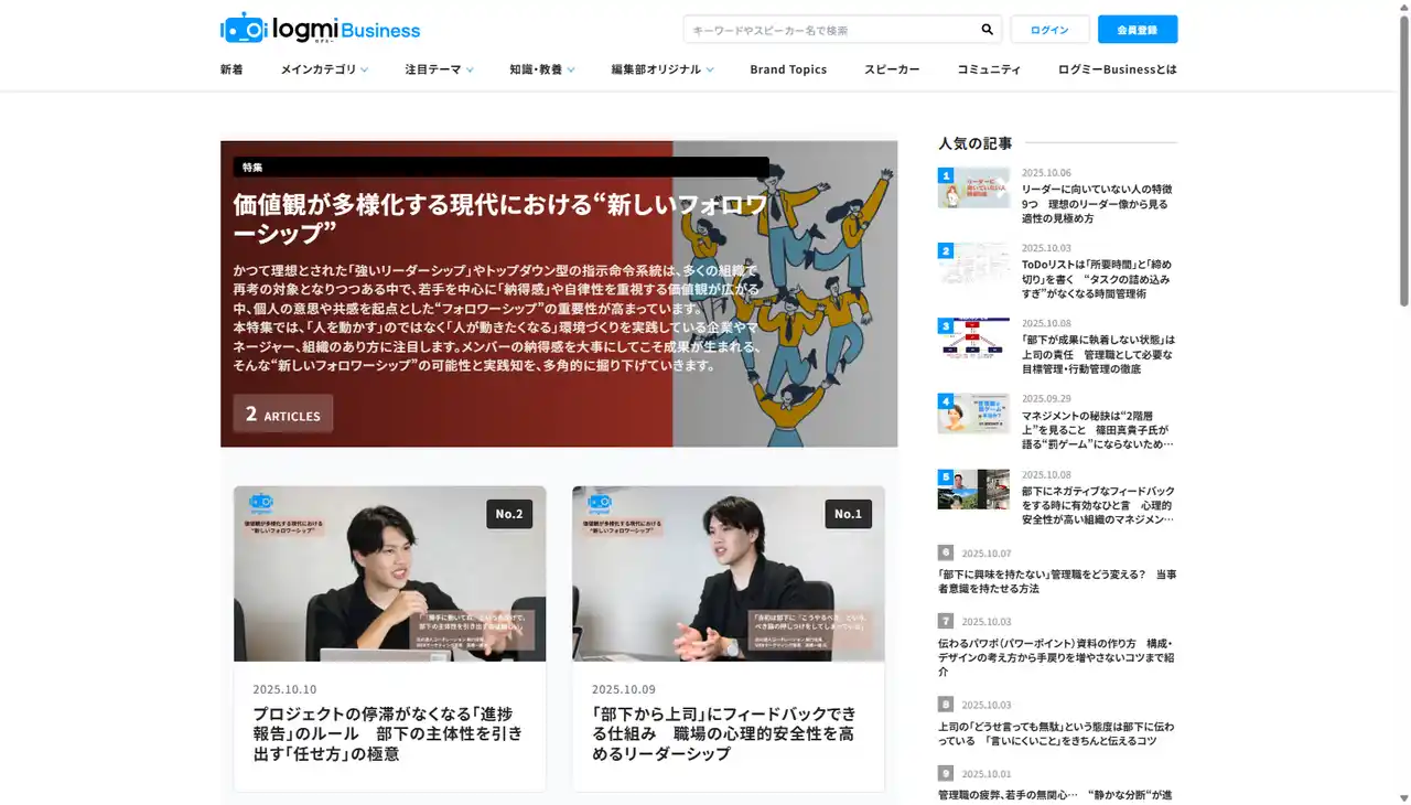 メディア事業を展開するログミー株式会社(本社:東京都渋谷区、代表取締役社長:三浦由加里)が運営する「ログミーBusiness」は、現代組織における新しいフォロワーシップに焦点を当てた特集記事「価値観が多様化する現代における"新しいフォロワーシップ"」を公開いたします。
