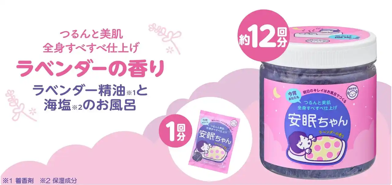 『睡眠美容 安眠ちゃん』は、海塩*1たっぷりのお風呂で明日のキレイを作る入浴料。 |