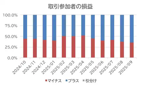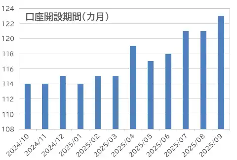 2025年9月の個人投資家は実現益を積み上げる結果となった。値幅が大きくも、小さくもなく、価格の変動性も限られていたことから、個人投資家は直近のレンジの上下限で逆張りをして、収益を積み上げたと見られる。また、口座開設期間が長期化しており、短期売買による収益確保を目指すのではなく、スワップポイント収益の積み上げなど、長期的な視点でFX取引に取り組んでいる様子が垣間見られた。 |