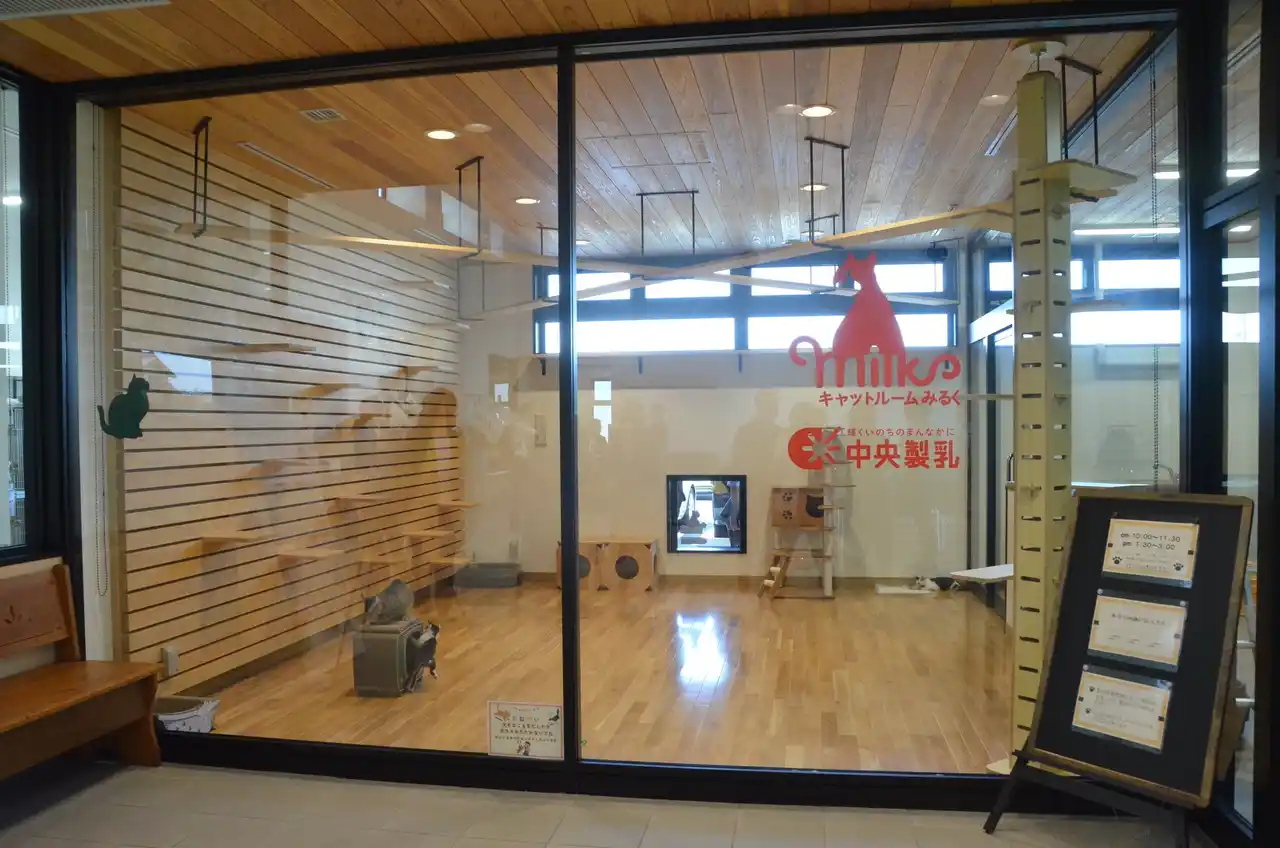 乳製品などを製造販売する中央製乳株式会社(豊橋市)が、市と命名権(ネーミングライツ)契約を締結し、猫モデルルームは「中央製乳キャットルームMilk」の愛称がつけられました。開所式で、荻野誠代表取締役は「あいくるが市民の皆さんにとって命をつなぐ、命を大切にする空間、時間になることを期待し、皆さんに愛されるあいくるになることを切に願います」と期待を込めました。 |