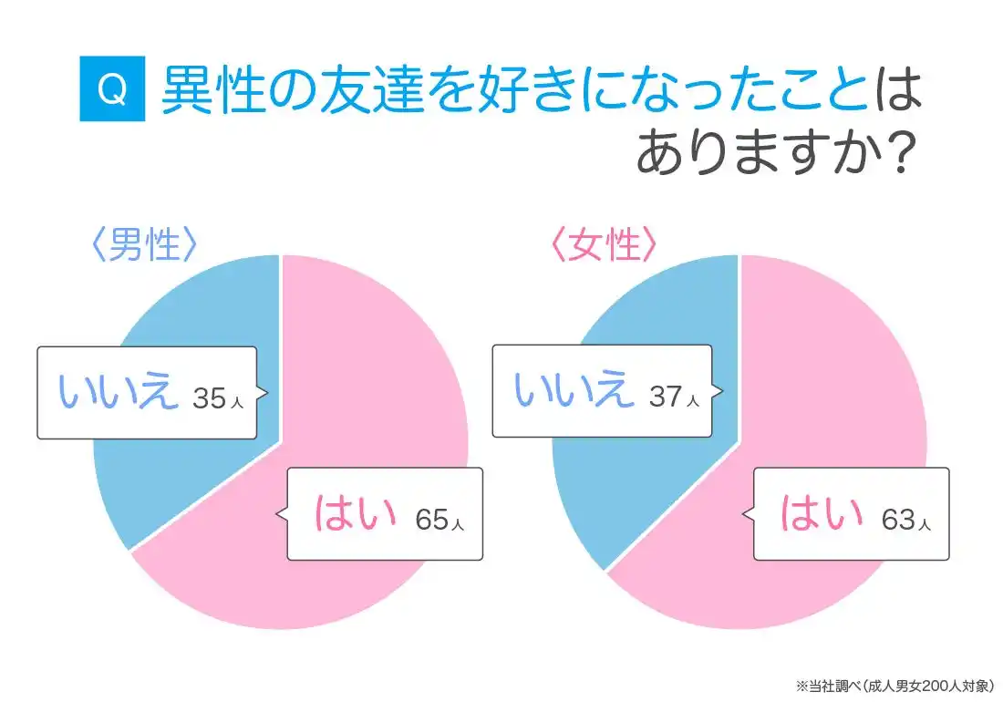 | 友情から恋愛感情に発展している人が半数以上いるため、珍しいことではないようです。 | ||||||||||||||||