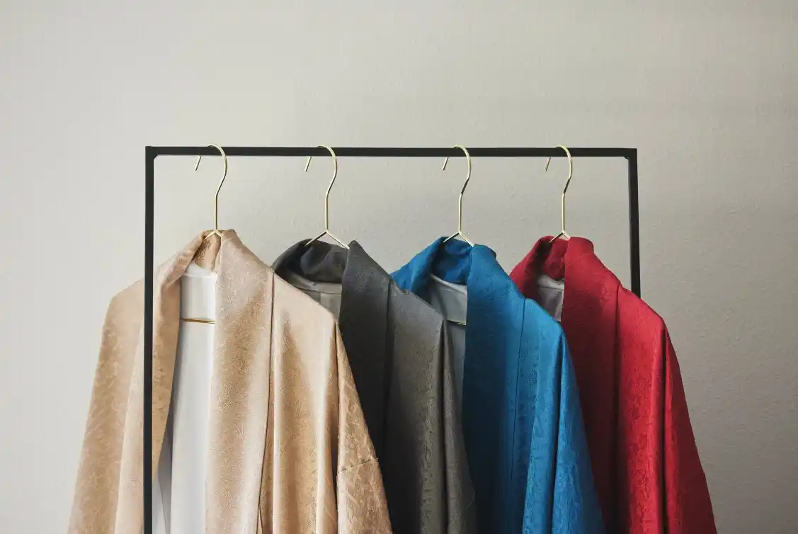 担当スタッフがお客様の好みをお伺いしながらコーディネートの提案をさせていただき、お気に入りの1着が決まれば帯小物もつけてトータルコーディネートしていただけます。 |